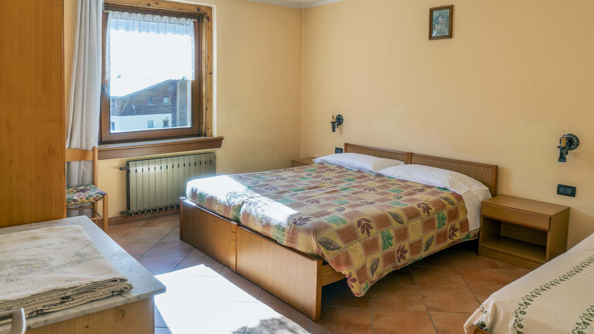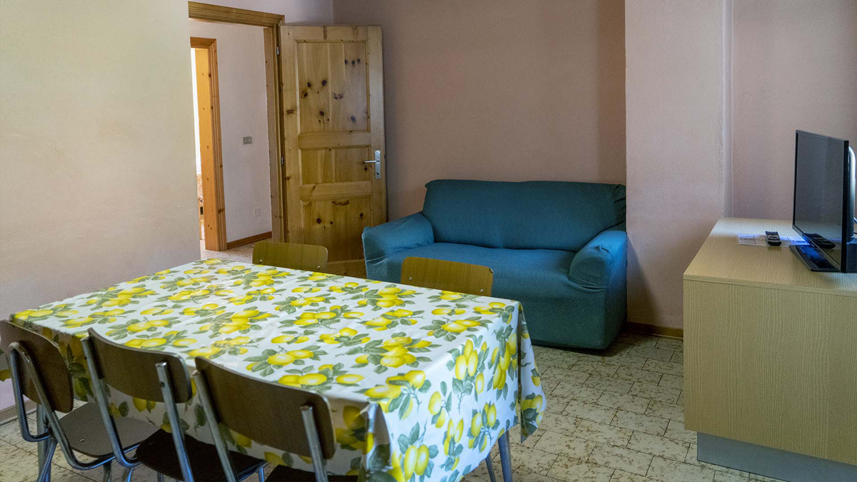 quadri 6/7 - 2 sypialnie z łóżkiem małżeńskim lub 2 łóżkami pojedynczymi, 1 sypialnia z 3 łóżkami pojedynczymi, pokój dzienny z aneksem kuchennym, łazienka z prysznicem lub wanną, balkon; apartamenty znajdują się na 2. i 3. piętrze (poddasze)
