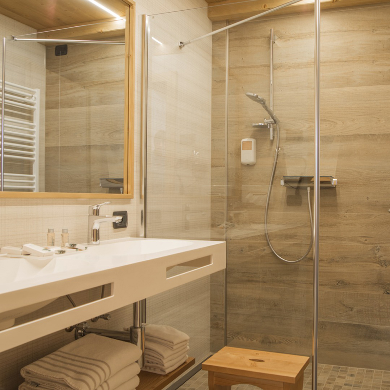 Depandance Family 3 - pokój z łóżkiem małżeńskim lub 2 łóżkami pojedynczymi i 1 dodatkowym łóżkiem pojedynczym, łazienka zazwyczaj z prysznicem; pokoje znajdują się w budynku naprzeciwko Hotelu Amerikan