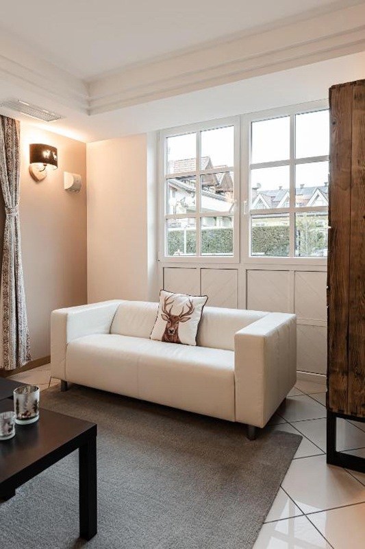 pokój z łóżkiem małżeńskim lub dwoma pojedynczymi łóżkami i ewentualnie dodatkowym łóżkiem pojedynczym lub łóżkiem piętrowym, łazienka z wanną, balkon; (na 3. i 4. łóżku mogą spać tylko dzieci poniżej 14 lat)