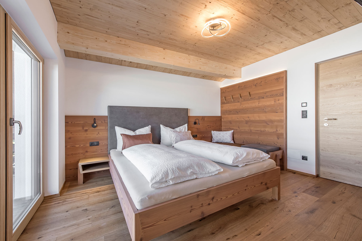 86 do 93 m² - 2 sypialnie z łóżkiem małżeńskim, pokój dzienny z aneksem kuchennym i rozkładaną kanapą dla 2 osób, 2x łazienka, prywatna sauna, 2 tarasy
