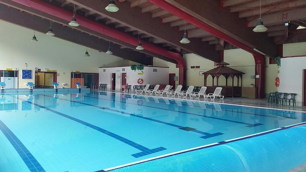 basen kryty 25m, duża sauna fińska, sauna parowa dla maksymalnie 25 osób - dostępne codziennie od 16:00 do 20:00, siłownia, wielofunkcyjna hala sportowa (koszykówka, piłka nożna, siatkówka itp.), piłkarzyki, gry wideo, rzutki