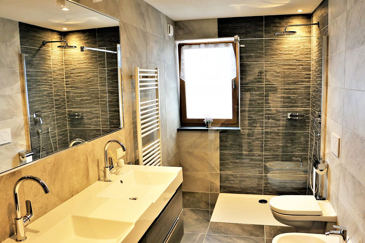 quadrilo 6 Cima Bianca - 100 m² - 1 sypialnia z łóżkiem małżeńskim, 1 sypialnia z łóżkiem małżeńskim i rozkładaną kanapą dla 2 osób, pokój dzienny z kominkiem, osobna kuchnia, 2x łazienka, taras