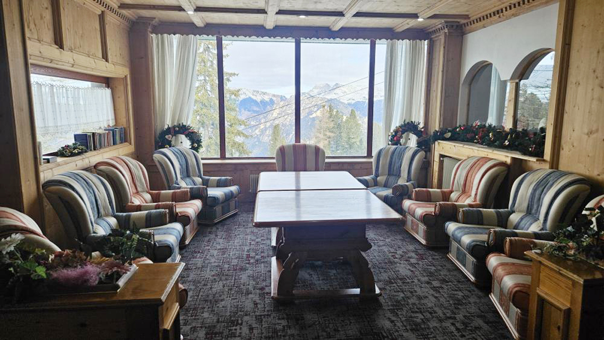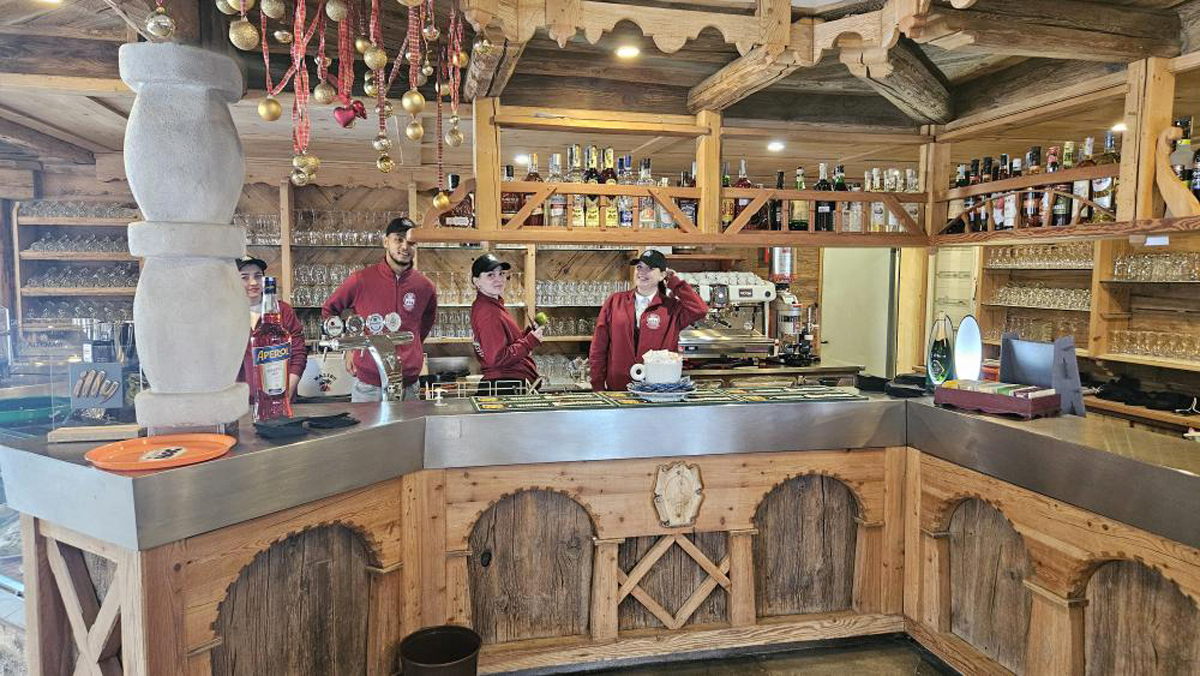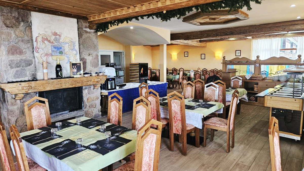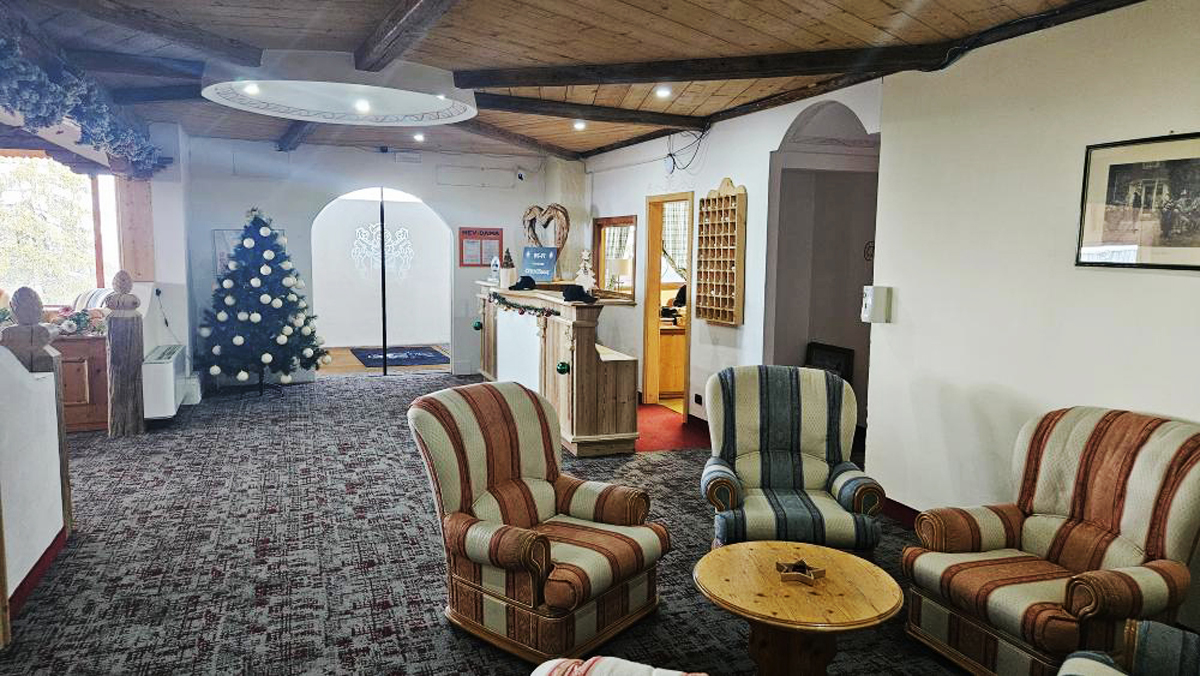recepcja / mały hol z kominkiem / bar, restauracja / samoobsługowa pizzeria na stoku tylko na lunch, restauracja, bar apres ski na świeżym powietrzu przy stoku z tarasem słonecznym i leżakami, salon z telewizją satelitarną, mały taras słoneczny z leżakami, kącik dla dzieci, sejf hotelowy, przechowalnia nart i butów narciarskich, wypożyczalnia i serwis sprzętu narciarskiego